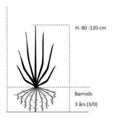Bliver under normale forhold omkring 3 – 5 meter høj og 1 – 2 meter bred.