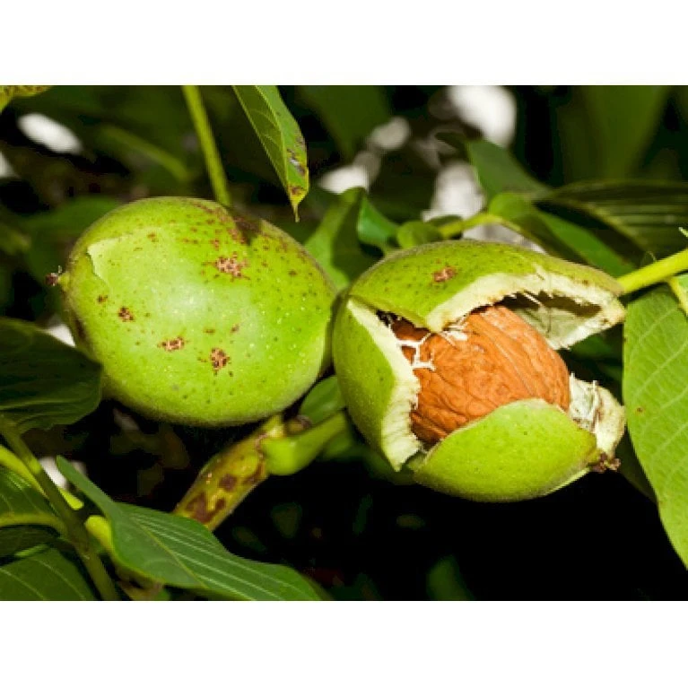 Træet får valnødder der modner i oktobermåned. Men træet får først valnødder efter 10-15 år. Valnødderne skal ikke plukkes, men samles op fra jorden, da de falder ned, når de er modne. Brug gerne handsker når valnødderne skal samles, da frugtkødet smitter kraftigt ved berøring.