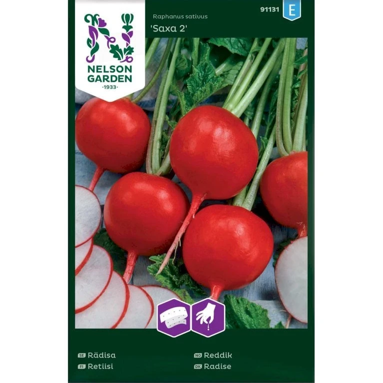Populær radisesort med runde, helt røde, sprøde spidser. Skal høstes spæde. Gentag derfor såningen med 2 ugers mellemrum gennem hele sommeren. Såbånd giver planter med passende afstand. Trives bedst i porøs jord, der holder på fugten. Vandes rigeligt. Dæk såningen med fiberdug for at undgå tidlige insektangreb på småplanterne.