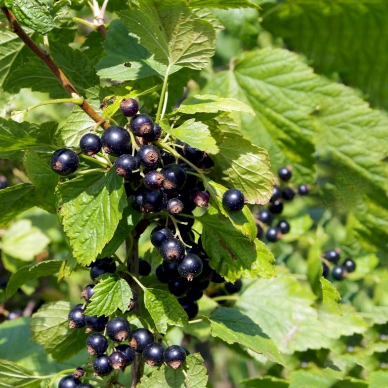 Udbyttes på busken er stort, og solbærrene vokser i klaser på 4 – 8 bær.