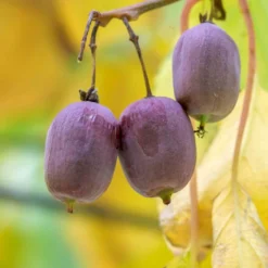 Størrelse : Stikkelsbærkiwi ‘Kens Red’ har frugter med en rødlig skræl og er virkelig dekorative. De bliver mellem 2 og 3 cm i diameter.