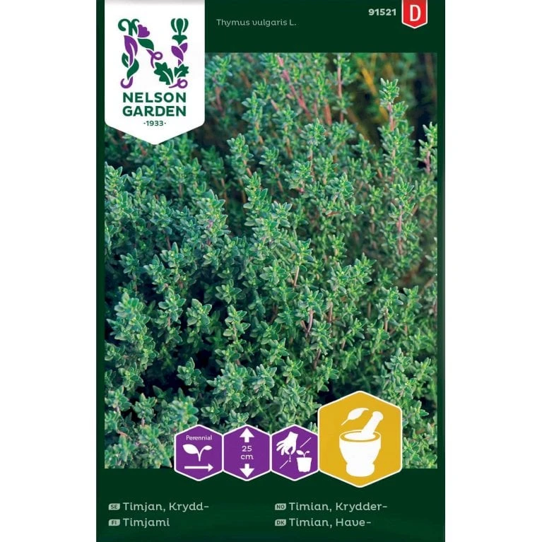Letdyrket, stedsegrøn krydderurt med små, mørkegrønne, aromatiske blade. Blomstrer smukt rosalilla og tiltrækker bier og andre insekter. Tåler tørke, passer derfor godt i gærder, mure og stenpartier. Bladene anvendes friske eller tørrede i madlavning. Høstes løbende. Til tørring plukkes hele kviste, før planten blomstrer. Trives i porøs, gerne mager jord, men er nøjsom.