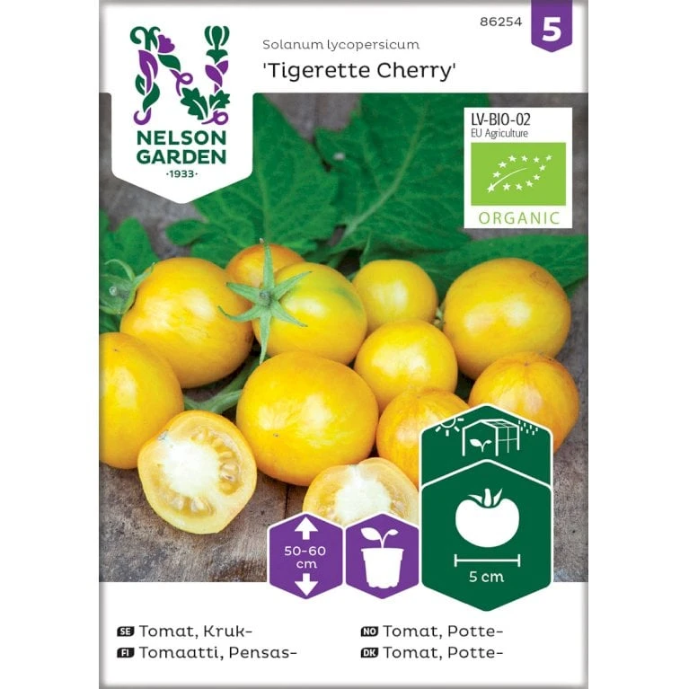 Frøposen indeholder økologiske pottetomatfrø.